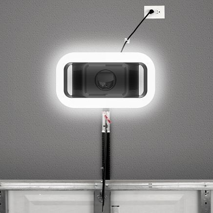 - 360° light ring uniformly brightens every corner of the garage with 2,000 lumens of long-lasting LED light.